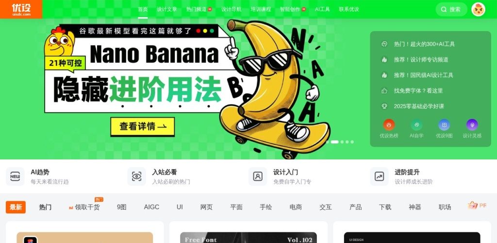 除了设计文章,优设网还提供了丰富的AIGC(人工智能生成内容)教程。随着AI技术的飞速发展,AIGC在设计领域的应用也越来越广泛。通过这些教程,你可以了解如何利用AI工具辅助设计创作,提高工作效率和质量。