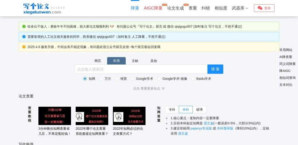 写个论文支持通顺度、降重力度两个降重模式,轻松降低论文查重率,让写论文更简单。写个论文不仅是一款免费论文降重神器,每天免费降重10次,而且还提供一站式聚合论文查重,包含:知网查重、维普查重、万方查重等服务,守护你毕业最后一站。