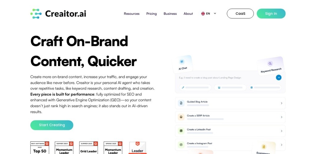 - 内容营销的超级充电:Creaitor可以将您的团队变成一个内容创建机器,提供更好、更快的内容创作,并保持您的语调。