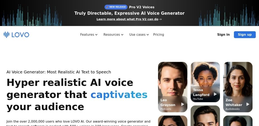 LOVO AI 是市场上最先进的AI语音和文本转语音生成器,为超过2,000,000用户提供服务。其独特的功能和易用性使其成为企业、内容创作者、教育家和任何希望创建引人注目的内容的人士的理想选择。