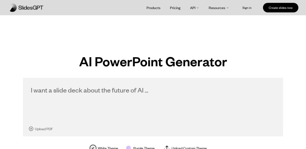快速创建PPT:使用SlidesGPT可以创建演示文稿的速度提高10倍,节省大量工作时间和精力。