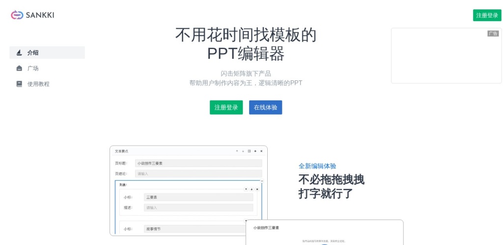 总结:闪击PPT是一款注重内容质量和逻辑性的PPT编辑器,提供全新编辑体验和丰富模板,帮助用户高效制作PPT。同时,它支持用户注册登录和在线体验,且平台兼容性好,产品处于持续更新和优化中。
