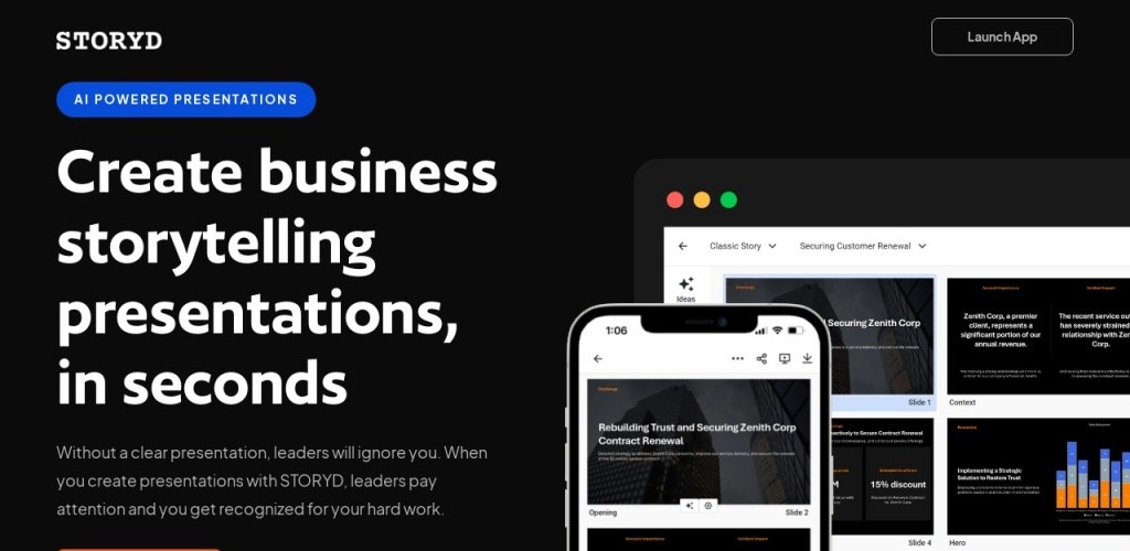 - 功能定位:STORYD是一款AI驱动的演示文稿创建工具,旨在帮助商业专业人士快速制作出高质量的商业故事演示文稿。