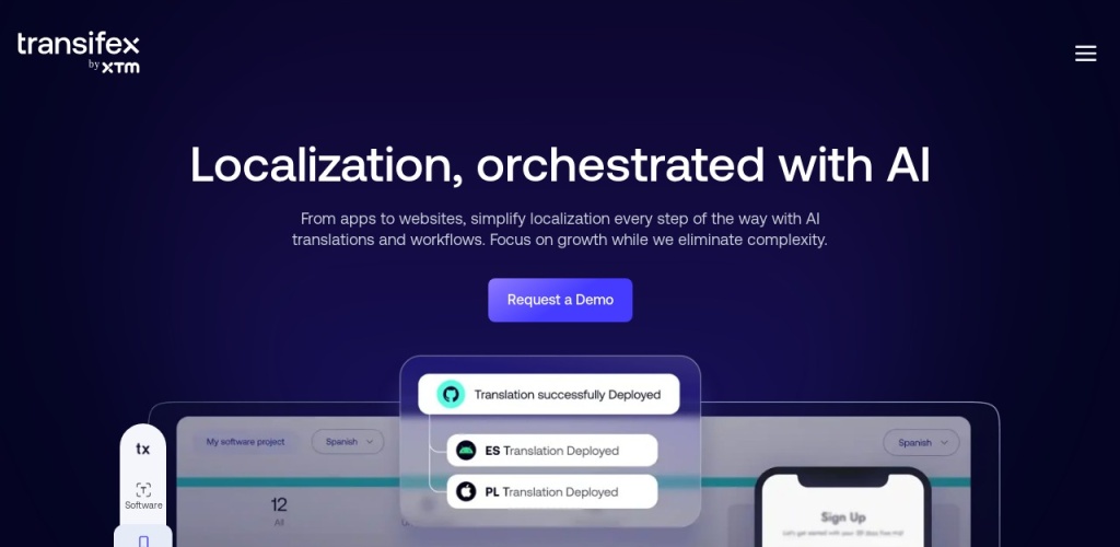 Transifex是一个利用人工智能技术进行数字内容持续本地化的平台。它的主要特点和功能包括: