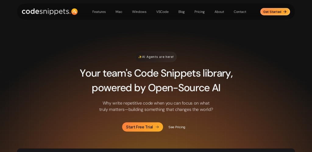 Code Snippets AI 是一个由 AI 驱动的代码片段库,专为团队设计。它提供了丰富的上下文 AI 聊天功能,并集成了安全的代码片段库。以下是其主要特点和功能: