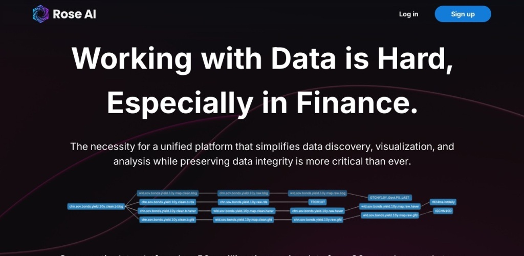 - 平台定位:Rose AI是一个专为金融分析师和决策者设计的云数据平台,旨在简化数据管理和分析流程