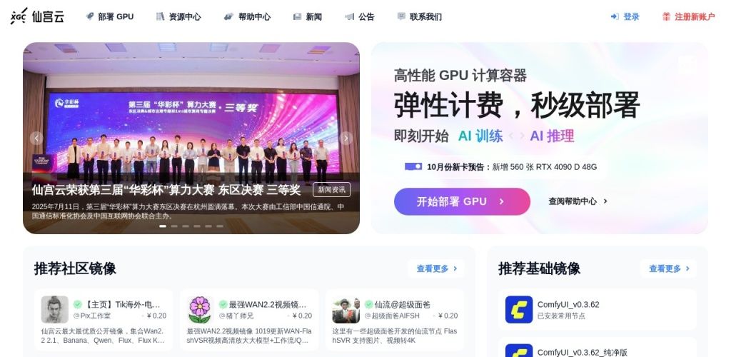 仙宫云在竞争激烈的AI算力市场中脱颖而出,主要得益于以下几大优势: