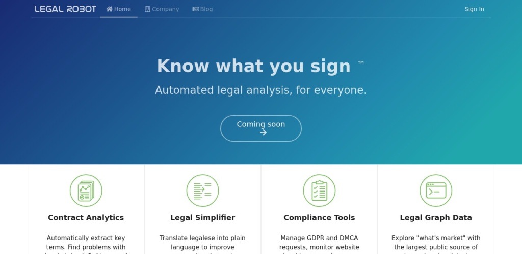 Legal Robot 是一个提供自动化法律分析服务的平台,主要功能包括: