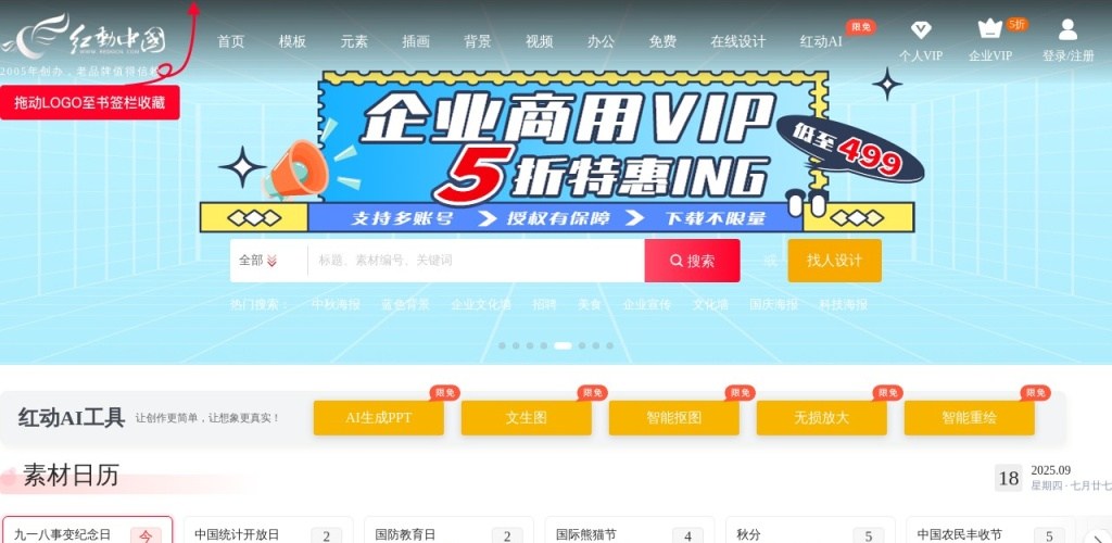 - 素材日历:详细列出了从当前日期到春节期间的节日和纪念日,以及距离当前的天数,方便用户提前规划设计需求。