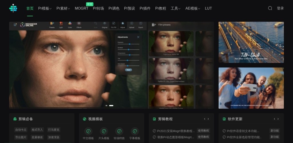 PR模板网是一个专注于提供Premiere Pro(简称PR)相关资源的网站,包括PR模板、PR素材、PR转场、PR预设、PR插件以及PR指南和PR教程等内容。以下是该网站的主要内容概述:
