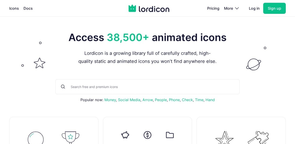 Lordicon 是一个提供 28,300+ 个动画图标 的平台,这些图标涵盖了各种风格,并且不断有新图标加入。以下是该网站的一些主要特点和用户反馈: