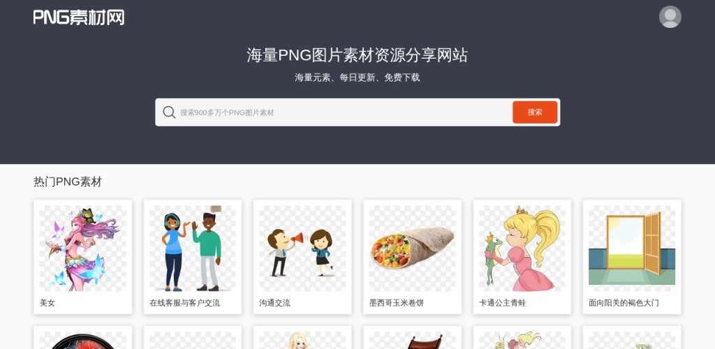 PNG素材网是一个免费的高清透明PNG素材资源分享网站