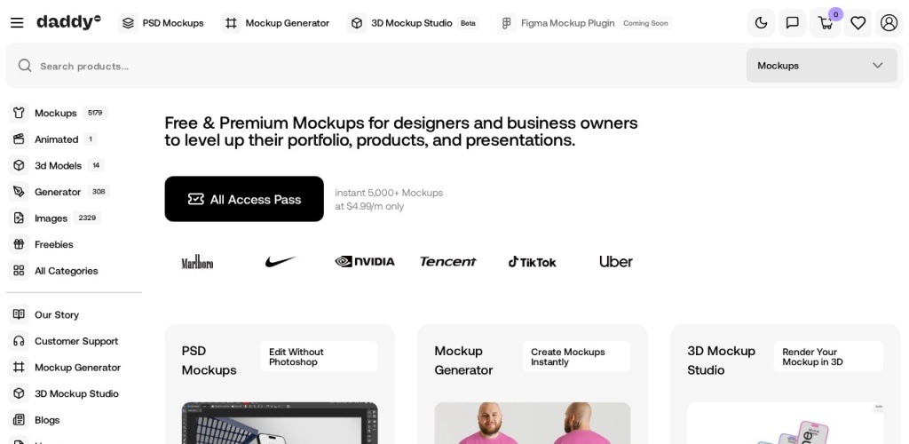 Mockupdaddy 网站提供高品质的模型(mockups),可提升设计作品的展示效果。其特点如下: