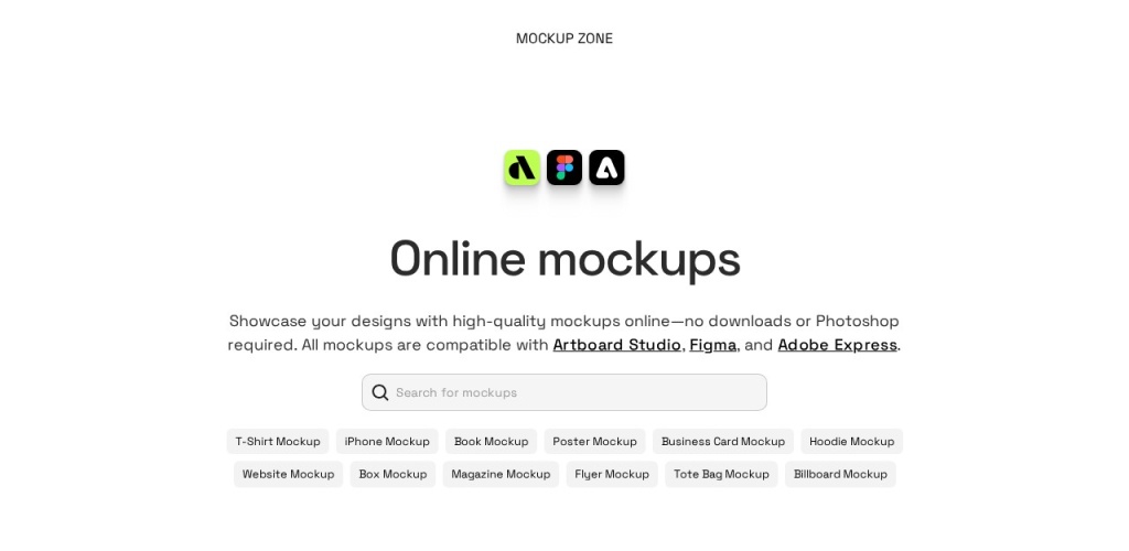 Mockup Zone是一个提供在线样机创建服务的网站,拥有丰富的免费样机资源,兼容多种设计工具,适合设计师、营销人员和创业者等用户使用。通过该网站,用户可以轻松创建高质量的样机,提升设计作品的展示效果。