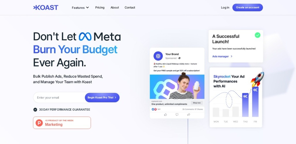 【智能广告管理新纪元】专为Meta广告主打造的AI工具Koast.ai,正在颠覆传统广告投放模式。这款创新平台通过深度集成Meta生态,为品牌方和广告代理商提供全链路智能解决方案,真正实现广告管理的降本增效。