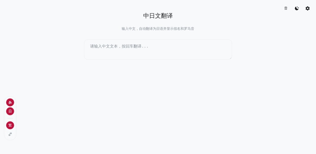 该工具创新性地将中文翻译、假名标注、罗马音对照三项功能合而为一。用户输入中文内容后,系统即时生成精准的日语译文,并智能拆解每个字符的假名书写与罗马音读法。例如输入”谢谢”,不仅显示「ありがとうございます」的标准写法,更同步标注「a ri ga to u go za i ma su」的发音指导。