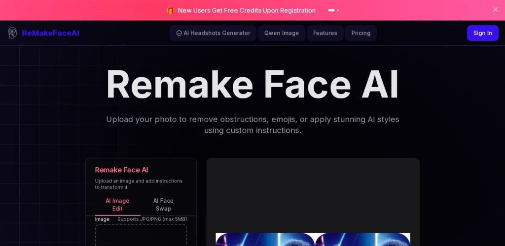 RemakeFace AI is an online AI-powered image editing and face transformation tool. It allows users to enhance selfies, apply creative styles, remove objects, and even anonymize faces with simple text prompts.