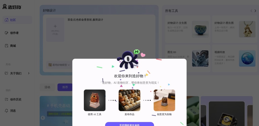 人人可用的极简操作: 我们坚信,伟大的工具不应只属于专业人士。造好物平台界面直观,操作流程极其简化。您无需任何设计背景,就像使用搜索引擎一样简单,输入想法,即可收获惊喜。