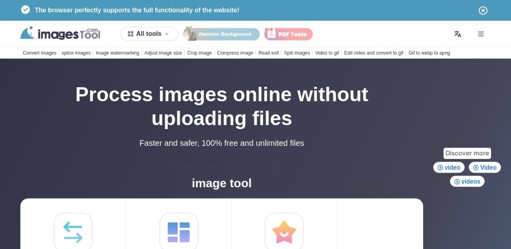 强大且高效,支持批量操作 依托先进的浏览器处理技术,imagestool的运行速度非常快。更重要的是,绝大多数功能都支持批量处理,让您能同时完成多张图片的转换、压缩或加水印操作,效率倍增。