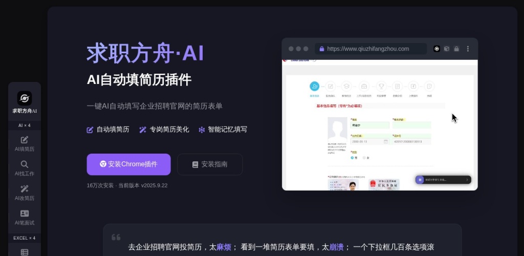 其**大厂招聘官网AI自动填简历**功能,能够学习用户的简历信息,智能识别并填充各大厂网申系统中冗长的表单字段,将原本需要**15-30分钟**的重复性劳动缩短至几分钟内完成。