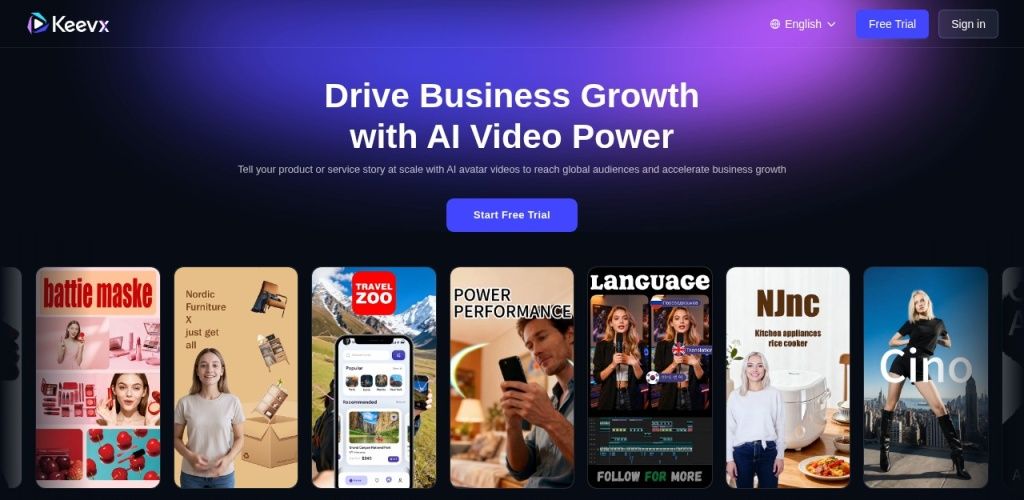 Keevx完全基于AI技术,无需拍摄、剪辑或演员,几分钟内即可生成专业级视频,大大降低了时间、成本和技能门槛。