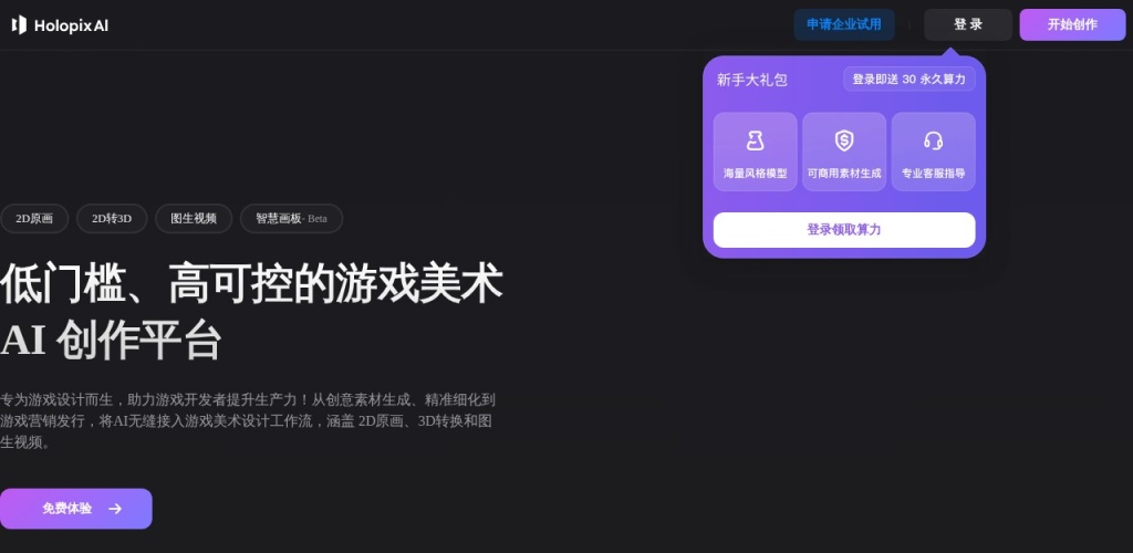 Holopix AI通过先进的AI技术,将传统需要数天的游戏美术创作流程压缩至3分钟内完成,为游戏团队提供效率提升70%的革命性解决方案,已获得10万+游戏团队的信任与选用。