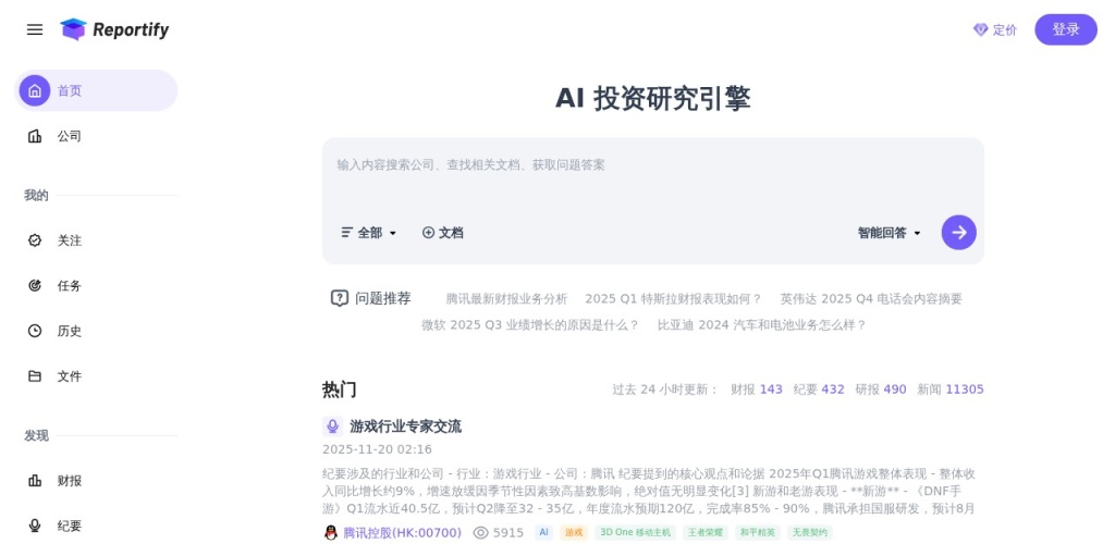 核心优势:Reportify能够将传统需要数小时完成的投资研究报告分析工作,压缩到几分钟内完成,并保持极高的准确性和洞察深度。