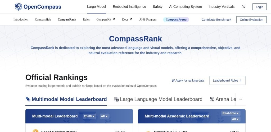 评估排行榜 – 实时更新,客观展示模型能力排名