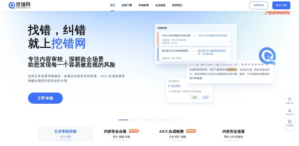 挖错网,内容安全审校,文本挖错,AIGC检测,敏感信息审核