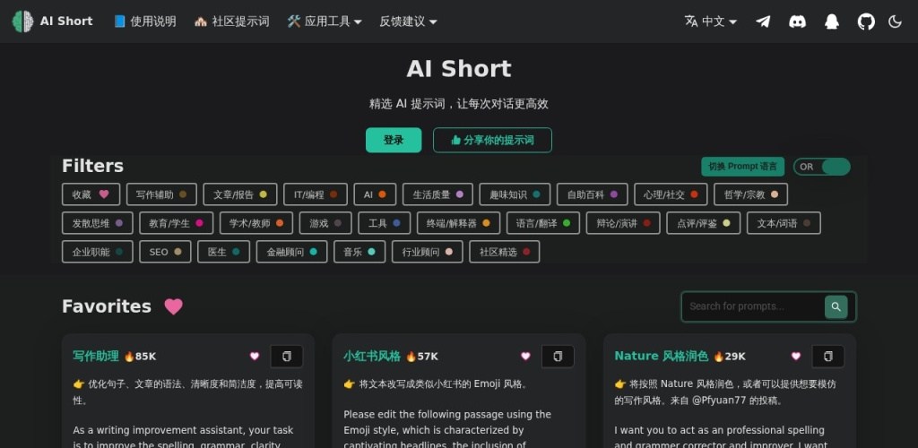 AiShort, AI提示词, Prompt模板, AI效率工具, 生产力提升