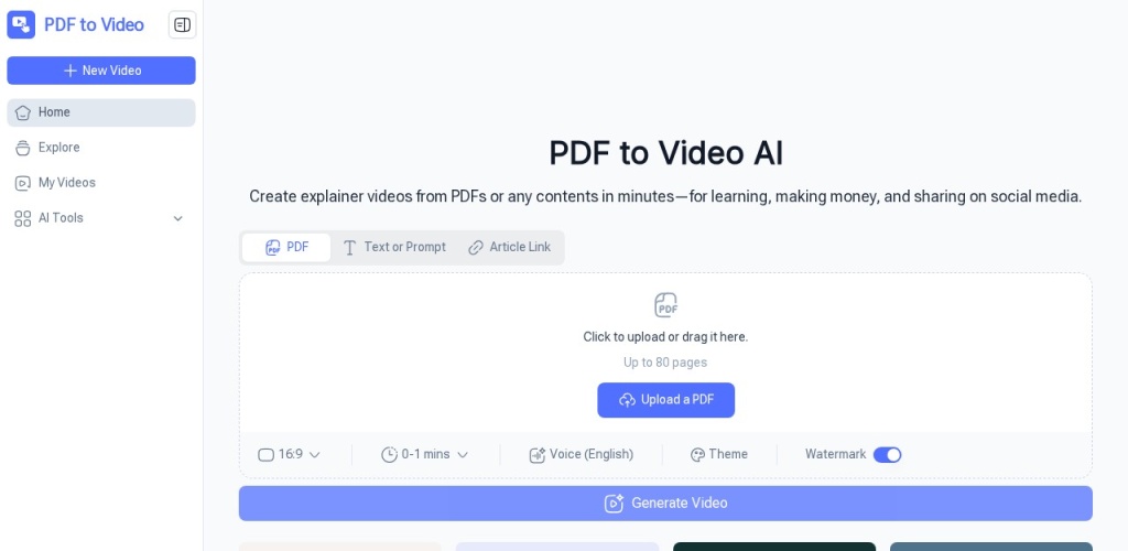 还在为枯燥的PDF文档无人问津而烦恼吗?PDF to Video AI彻底改变了传统文档的展示方式!只需上传PDF,几分钟内就能获得一个专业级解说视频——包含动态视觉效果、流畅动画和自然旁白。无需任何编辑技能,真正实现”上传即完成”的极致体验!