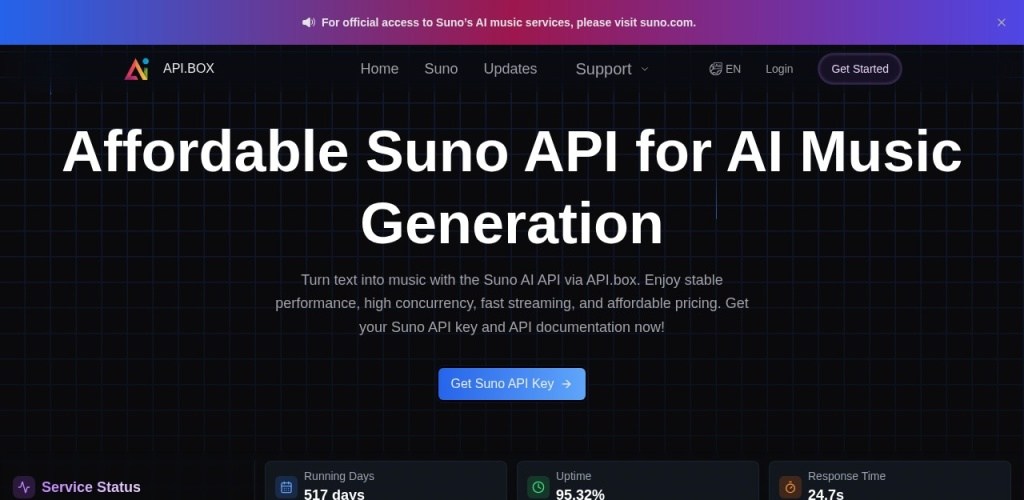 关键词:Suno API, AI音乐生成, API.box, 文本转音乐, 高并发支持