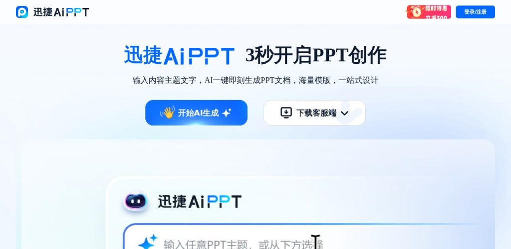 迅捷AiPPT官方网站界面,体验智能PPT生成