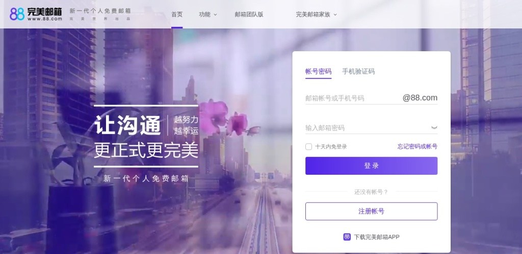 图:88完美邮箱简洁、专注的官网及邮箱界面
