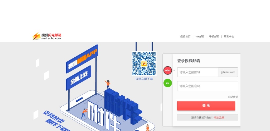 搜狐闪电邮箱登录首页,设计简洁,直达核心功能