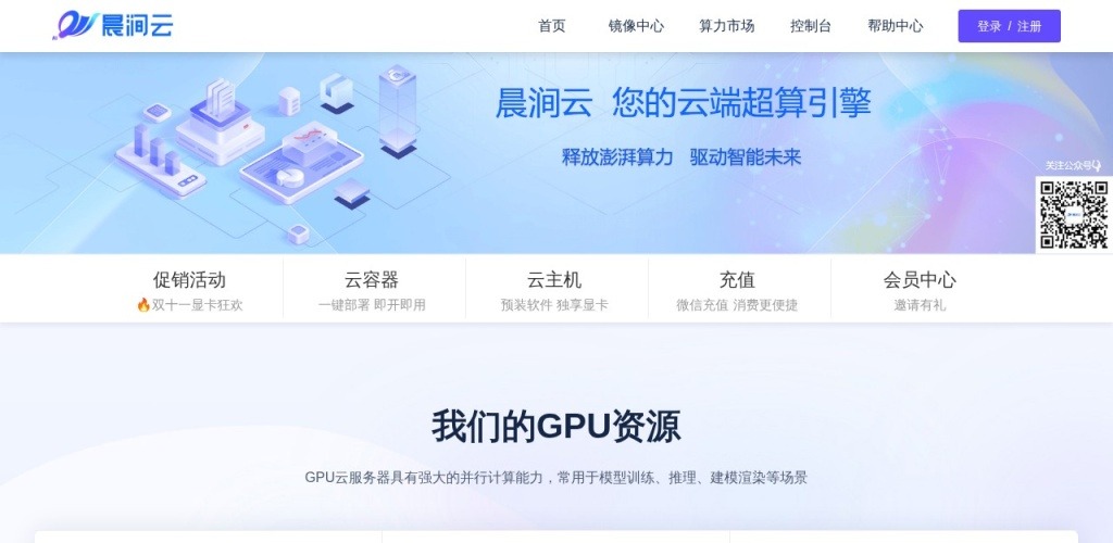 晨涧云官网首页,清晰展示其GPU算力服务核心