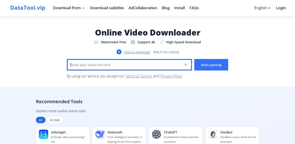 现在,这一切困扰都将迎刃而解。DataTool.vip在线视频下载器正是为解决这一核心痛点而生。它无需安装复杂软件,不占用本地存储,仅需一个视频链接,即可跨越平台壁垒,帮你将心仪的视频高质量、无水印地保存到本地设备。