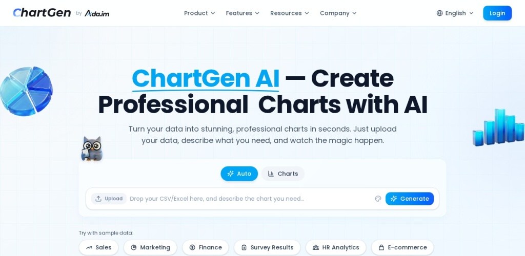 在数据驱动的时代,无论是季度财务报告、营销活动分析,还是用户调研结果,将冰冷的数据转化为直观、专业的图表,是每个职场人必须面对的挑战。然而,传统图表工具学习成本高、操作繁琐,让许多非技术背景的从业者望而却步。现在,ChartGen AI的出现,彻底改变了这一局面。它承诺在几秒钟内,将您的CSV或Excel数据转化为精美的专业图表,整个过程只需一次上传和一句描述。