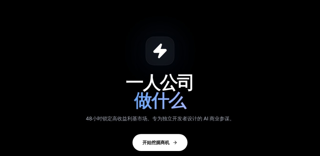 “一人公司做什么”是一款极简却硬核的创业验证工具。针对当前 AI 创业热潮,它能帮你在投入金钱前进行商业模式“初筛”。用户只需输入创意方向,AI 即可调取市场搜索热度、竞争难度及同类竞品收益等关键维度进行实时评估。作为资深创业导师,它还会对你的业务逻辑进行穿透式问询,帮你识别“伪需求”并规避起步坑点。它大幅降低了副业试错成本,是数字游民和个体经营者实现轻资产、高效率起步的必备决策智库。