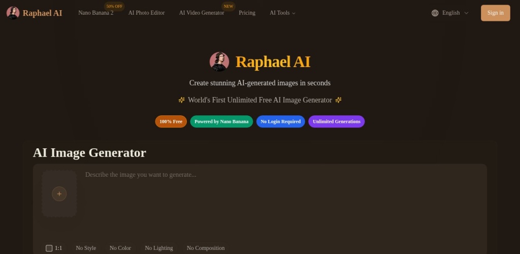 本站 Ai工具集提供的 Raphael AI官网网址来源于网络,对该网址的指向,不由 Ai工具集实际控制,在 2026年3月24日 下午7:40首发收录时,该网页上的内容,都属于合规合法,后期网页的内容如出现违规,可以直接联系网站管理员进行删除, Ai工具集不承担任何责任。