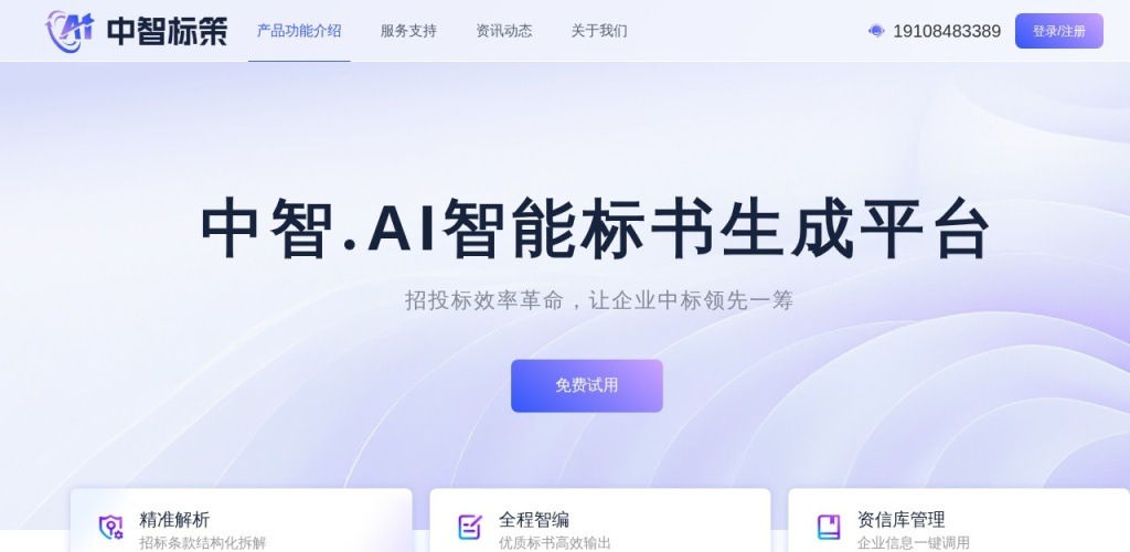 中智标策AI标书支持Web网页端在线、混合云、私有化部署等方式使用。用户通过浏览器访问中智标策官网,注册登录后即可上传招标文件、调用企业资信库、一键生成投标文件。私有化部署客户可将系统部署于自有服务器,实现数据完全本地化管控。