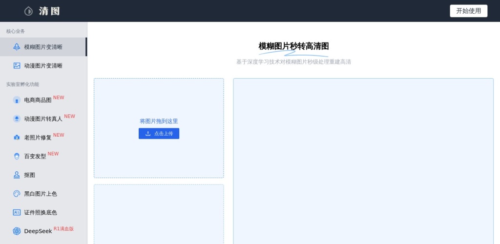 清图是一款在线图片处理工具,可以将模糊图片秒变清晰,支持动漫图片、证件照、黑白图片上色功能。