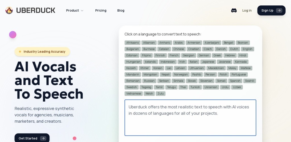 Uberduck是一款基于人工智能技术的语音生成平台,能够高效地合成逼真的语音,满足您的个性化需求。