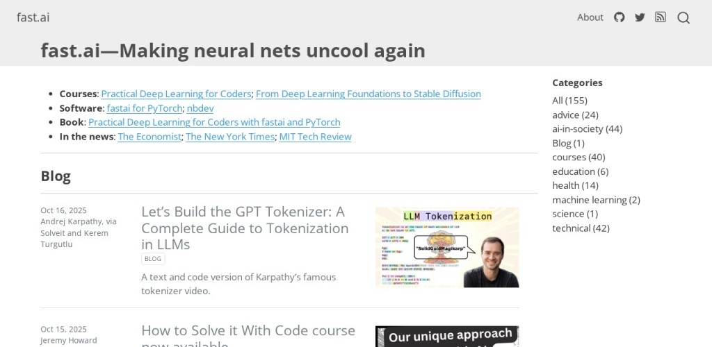 Fast AI专注于深度学习和人工智能领域的学习,提供丰富的课程内容和实战项目,帮助学员快速掌握AI技能。