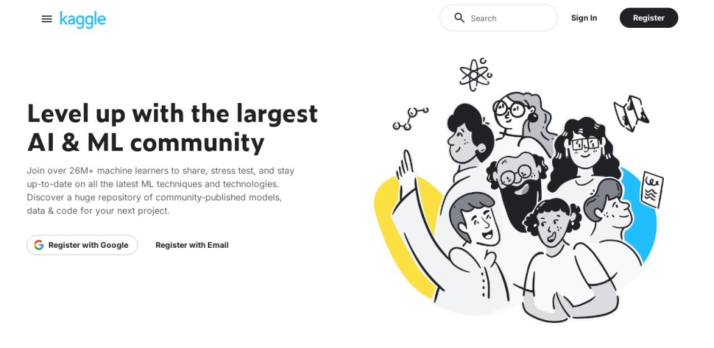 Kaggle是一个专注于机器学习和数据科学的社区平台,虽然它本身不直接涉及人工智能技术的研发和应用,但它为人工智能爱好者和研究者提供了一个数据共享、学习和竞技的平台。