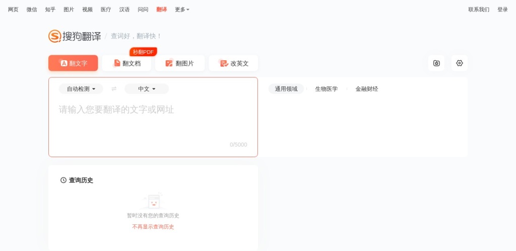 搜狗翻译,支持中、英、法、日等50多种语言之间的互译功能