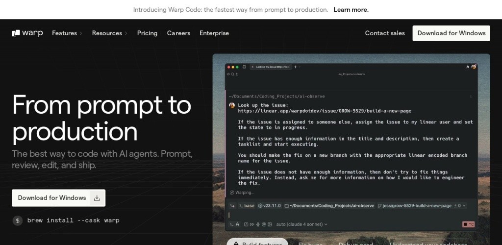 Warp是一款基于人工智能技术的终端工具。它内置了AI命令搜索功能,实现了模糊匹配、自动纠错和智能推荐,为用户提供更准确、更智能的搜索结果,从而节省开发时间并提高效率。
