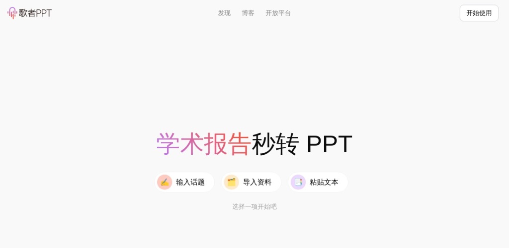 歌者PPT是一款基于人工智能技术的PPT生成工具,它利用AI智能算法帮助用户轻松制作高质量PPT。