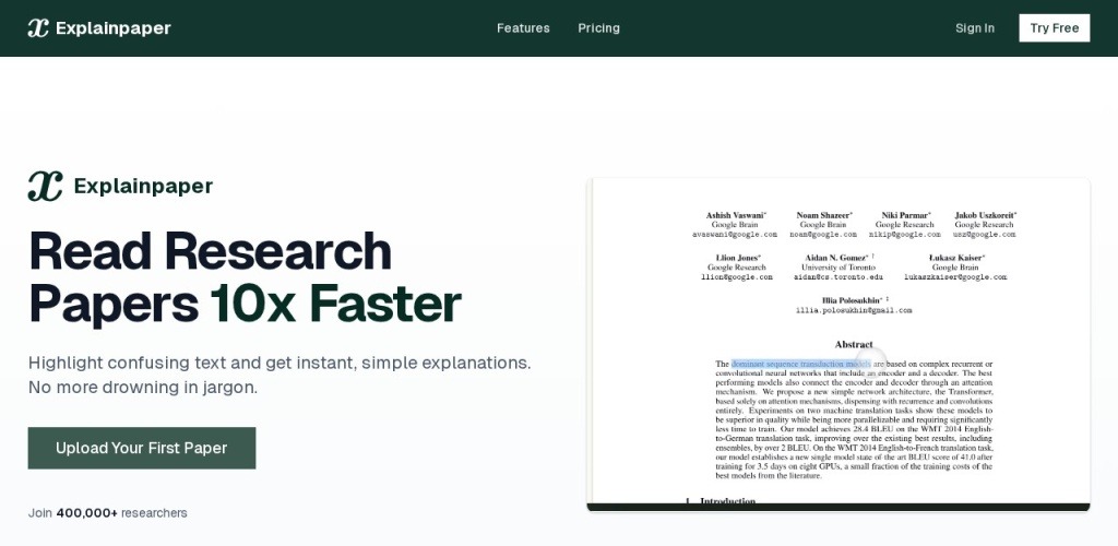 Explainpaper 官网简介: