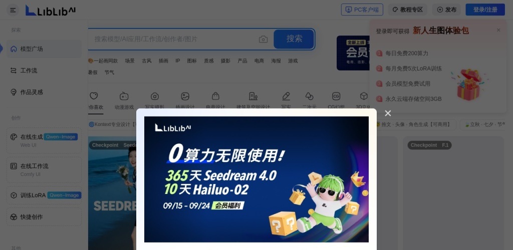 丰富的模型素材:LiblibAI·哩布哩布AI汇集了众多原创AI模型,涵盖了各种风格和领域,满足创作者的多样化需求。